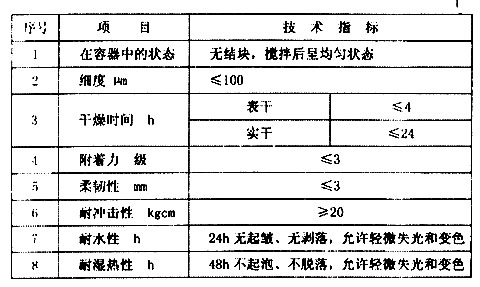 ??? 防火涂料在劇試其防火性能之前,其理化性能應(yīng)符合GB 12441中4.2條的規(guī)定。見表1。