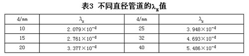 ? 當μ=0.15時,依據(jù)表2和表3中的數(shù)據(jù),計算出不同的管道直徑條件下,λz/μ在λq+λz/μ中所占比例如表4所示。
