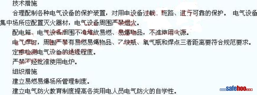 建立電氣防火責(zé)任制,加強(qiáng)電氣防火重點(diǎn)場所煙火管制。 建立電氣防火檢查制度發(fā)現(xiàn)問題及時(shí)處理。 強(qiáng)化電氣防火領(lǐng)導(dǎo)體制,建立電氣防火隊(duì)伍。