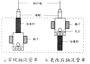 常規(guī)抽汲管串,為了方便更換抽子膠皮,一般把抽子放在最下面,上面接加重桿(如圖