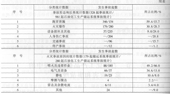 根據(jù)中國石油化工總公司安全監(jiān)督辦公室編制的(石油化工典型事故匯編(1983—1993)》資料,中國石油化工系統(tǒng)10年間共發(fā)生重大典型事故47起,涉及石油化工產(chǎn)品儲存、運(yùn)輸?shù)氖鹿?2起,占46.80%;煉油系統(tǒng)共發(fā)生各類事故291起,其中儲運(yùn)部分事故74起,占25.4%;化工系統(tǒng)發(fā)生各類事故91起,其中儲運(yùn)部分事故15起,占16.5%;