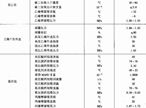 因選擇不同的裂解和分離工藝且原料品質(zhì)等不盡相同,工藝條件皆有所不同,表3—2中列出順序分離的主要工藝操作條件。