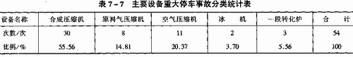 其中,主要設備發(fā)生重大停車事故54次,以合成氣壓縮機發(fā)生停車事故最多,為30次。詳見表7—7。