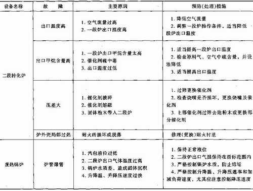 表7—11轉(zhuǎn)化單元主要故障及預(yù)防(處理)措施