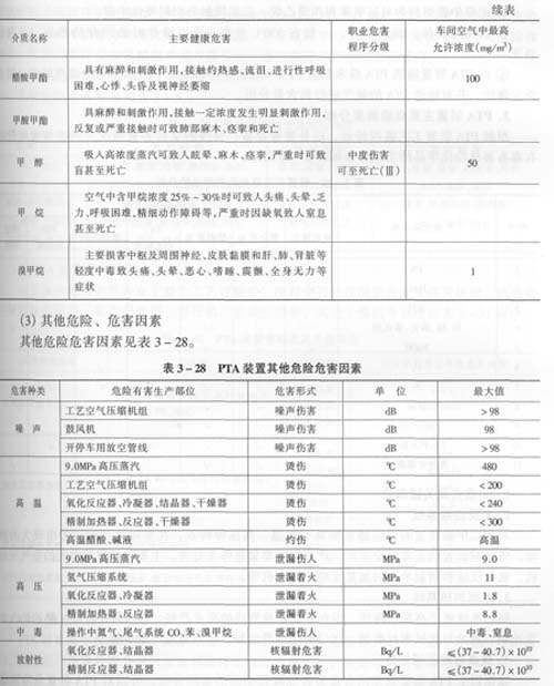?、貾TA裝置為中壓下生產(chǎn)的裝置,主要物料為對(duì)二甲苯和醋酸,均為易燃易爆品,加物料的載體為熱油,為有毒物質(zhì)。