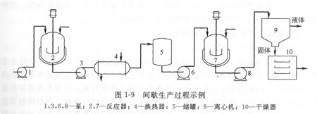 間歇生產(chǎn)是精細化工,生物制藥和食品飲料生產(chǎn)行業(yè)中主要的生產(chǎn)方式。在間歇控制標準SP88中,間歇過程的定義為:將有限量的物質(zhì),按規(guī)定的加工順序,在一個或多個加工設備中加工,以獲得有限量的產(chǎn)品的加工過程。如果需要更多的產(chǎn)品則必須重復整個過程。圖1—9給出了一組間歇生產(chǎn)流程示例。
