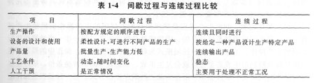 間歇過程由多個分批操作的間歇設備單元(如反應器、加熱釜)和半連續(xù)操作設備單元(如泵、換熱器、過濾機等)組成。間歇生產(chǎn)過程,又指生產(chǎn)過程依據(jù)事先制訂的明確任務,確定生產(chǎn)設備組成和操作條件,分配設備單元的生產(chǎn)任務,安排、協(xié)調(diào)、實施生產(chǎn)的過程。間歇生產(chǎn)過程和連續(xù)生產(chǎn)過程同屬于過程系統(tǒng)。但是,由于生產(chǎn)任務、協(xié)調(diào)方法、操作方式及產(chǎn)品數(shù)量和產(chǎn)量的不同要求,兩種操作方式的特點存在著很大的差別,為了進一步了解間歇過程的特點,表l—4列舉了它們之間的主要區(qū)別。