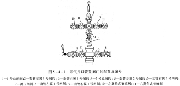 ① 采氣井口裝置閥門的配置及編號(hào)如圖5-4-1所示。