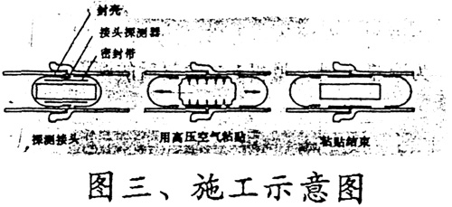 膠粘劑是一種延伸率大于100%的環(huán)氧樹脂。帶氣作業(yè)時,在施工間距兩端設(shè)置發(fā)送裝置,用以插入和移動封殼,心軸中心有個通氣孔當(dāng)心軸膨脹時煤氣也能流通。