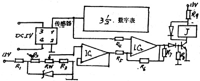 溫度敏感三極管反應(yīng)靈敏,IC2為溫度取樣,IC3為比較電壓取樣,IC4為比較器,J為繼電器,接點(diǎn)帶電加熱器,給箱內(nèi)氣溫升溫或停止升溫。