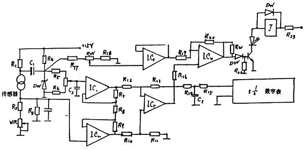 位數(shù)顯表顯示其濃度變化,RW電位器為平衡調(diào)節(jié)用。