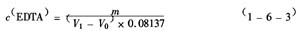 EDTA標(biāo)準(zhǔn)滴定溶液的實(shí)際濃度c(EDTA),mol/L,按式(1-6-1)計(jì)算: