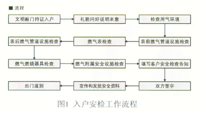 燃?xì)獍踩恢笔巧鐣?huì)高度關(guān)注的熱點(diǎn)問(wèn)題。根據(jù)中國(guó)城市燃?xì)鈪f(xié)會(huì)統(tǒng)計(jì),2011年全國(guó)共發(fā)生燃?xì)馐鹿?14起,傷亡人數(shù)919人,燃?xì)馐鹿试斐傻慕?jīng)濟(jì)損失高達(dá)數(shù)十億元,給廣大居民的生命財(cái)產(chǎn)安全造成了威脅,也給政府主管部門(mén)、相關(guān)管理單位以及城鎮(zhèn)燃?xì)饨?jīng)營(yíng)企業(yè)造成了嚴(yán)重的社會(huì)負(fù)面影響?!冻擎?zhèn)燃?xì)夤芾項(xiàng)l例》對(duì)燃?xì)饨?jīng)營(yíng)與服務(wù)單位的責(zé)任進(jìn)行了規(guī)定:燃?xì)饨?jīng)營(yíng)者應(yīng)當(dāng)向燃?xì)庥脩舫掷m(xù)、穩(wěn)定、安全供應(yīng)符合國(guó)家質(zhì)量標(biāo)準(zhǔn)的燃?xì)?,指?dǎo)燃?xì)庥脩舭踩脷?、?jié)約用氣,并對(duì)燃?xì)庠O(shè)施定期進(jìn)行安全檢查。CJJ 51—2006《城鎮(zhèn)燃?xì)庠O(shè)施運(yùn)行、維護(hù)和搶修安全技術(shù)規(guī)程》第3.5條對(duì)燃?xì)庥脩粼O(shè)施的檢查周期、檢查內(nèi)容進(jìn)行了明確規(guī)定。GB/T 28885—2012《燃?xì)夥?wù)導(dǎo)則》對(duì)上門(mén)服務(wù)、用戶燃?xì)庠O(shè)施安全檢查的內(nèi)容進(jìn)行了詳細(xì)描述。因此,如何高效開(kāi)展入戶安全檢查和戶內(nèi)隱患整改工作,已成為燃?xì)饨?jīng)營(yíng)企業(yè)用氣安全管理亟待解決的問(wèn)題。