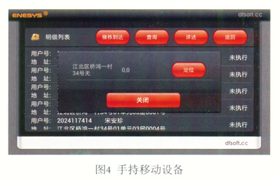 a.可核實(shí)入戶安檢真實(shí)性。如圖4所示系統(tǒng)管理界面,利用GPS定位技術(shù),安檢員持手持移動設(shè)備到達(dá)小區(qū)樓棟,可以點(diǎn)選“樓棟到達(dá)”,再點(diǎn)選“定位”,系統(tǒng)記錄當(dāng)時的GPS坐標(biāo)和到達(dá)時間。同時,對進(jìn)、出戶安檢時間有準(zhǔn)確記錄,如遇意外,可對檢查事件進(jìn)行追溯,確保安檢的真實(shí)性。在以后不斷完善系統(tǒng)后,若設(shè)置一鍵報警功能,可確保安檢員人身安全。