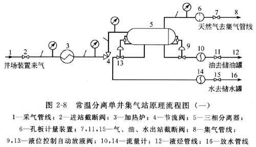 儲氣構造、地形地物條件、自然條件、氣井壓力溫度、天然氣組成以及含油含水情況等因素是千變萬化的,而適應這些因素的氣田天然氣集輸流程也是多種多樣的。以下僅對較為典型和常見的流程加以描述。