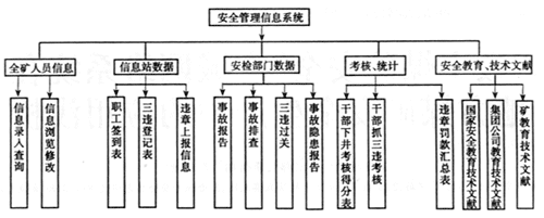 (4) 考核統(tǒng)計(jì)子系統(tǒng)。包括對(duì)干部的考核和有關(guān)情況報(bào)表。主要有:對(duì)干部的下井、質(zhì)量控制、事故控制、安全行為、安全培訓(xùn)、業(yè)務(wù)學(xué)習(xí)的方面進(jìn)行綜和考評(píng),并以得分的形式進(jìn)行獎(jiǎng)勵(lì)或處罰;對(duì)干部的考核、安全檢查、違章罰款、干部下井覆蓋情況、事故情況等以報(bào)表的形式進(jìn)行上報(bào)。