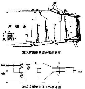 采掘場內(nèi)接地保護系統(tǒng),移動變電站到采掘場內(nèi)用電設(shè)備,供電距離一般在1~2km, 采掘 場內(nèi)用電設(shè)備為移動式的,其外殼無法就近與地面連接,通過電纜的地線將設(shè)備外殼與移動 變 電站接地線連在一起,形成完整的接地系統(tǒng)。但如何保證接地線的可靠連接,在黑岱溝露天 礦采用的地線監(jiān)測保護,就可以保證地線的可靠聯(lián)接。
