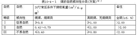 ?。保梗梗材臧娴摹睹旱V安全規(guī)程》執(zhí)行說(shuō)明規(guī)定采用吸氧量法。即“雙氣路氣相色譜儀吸氧鑒定法”,鑒定結(jié)果按表10-4-1分類(方案)確定自燃傾向性等級(jí)。