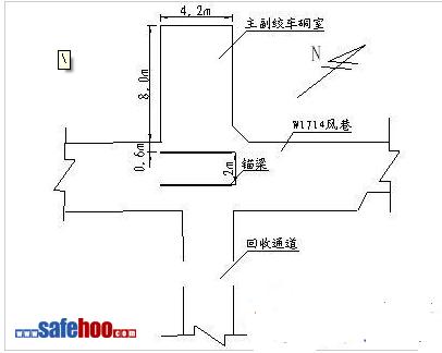 具體操作要求:施工前,先在風(fēng)巷上幫絞車硐室開口處,距煤壁0.6m安裝一根全長(zhǎng)4.2m的錨梁,然后在距風(fēng)巷上幫2.6m再安裝一根全長(zhǎng)4.2m的錨梁,安裝錨梁時(shí),必須將南、北側(cè)錨索眼打后方可安設(shè)錨梁,安裝錨梁時(shí),每一端不少于兩人。抬起時(shí)要配合一致,防止錨梁掉下傷人。