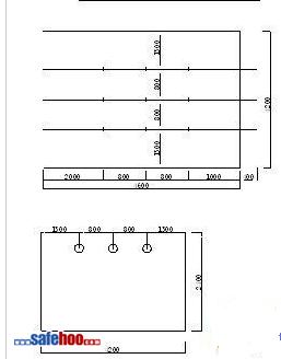7、主、副絞車硐室炮眼布置三視圖,如圖三所示(單位:mm)