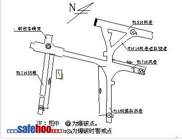 3、設(shè)置警戒前,班組長(zhǎng)必須派專人對(duì)W1714切眼內(nèi)進(jìn)行檢查,確保無(wú)人后,方可在可通往爆破地點(diǎn)的所有通道上設(shè)置警戒,“人、繩、牌”三齊全,經(jīng)檢查無(wú)誤后,爆破工方可在警戒線以外的安全地點(diǎn)進(jìn)行爆破。