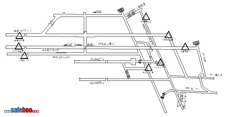 巷道放炮警戒如上圖所示。圖中A、B、C、D、E、F、G、H距離不得小于150m。放炮前,警戒點(diǎn)以里嚴(yán)禁有人員。