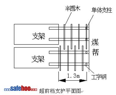 3、超前檔規(guī)格為:傾向長3.0m,走向長1.2m,高度2.6m。