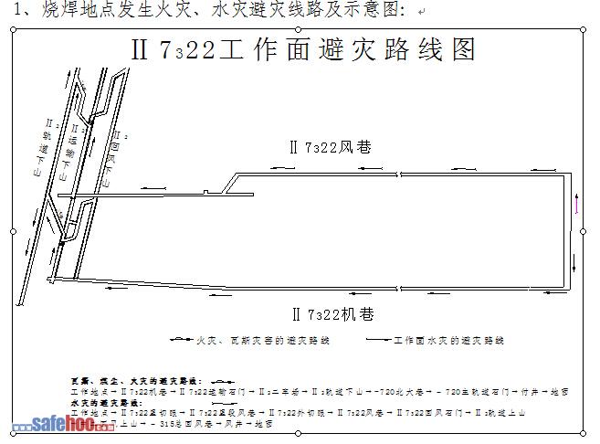 8、施工過程中,若發(fā)生水災、火災等事故時,人員按照避災路線迅速撤離。