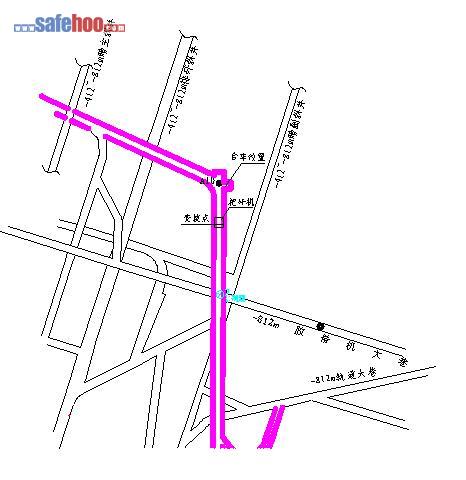 16、臺(tái)車停止使用后,及時(shí)將其耙斗拉至臺(tái)車前方位置并停電閉鎖。為防止每次使用之后臺(tái)車前堆貨過高,耙斗在使用之后可停放在改線硐口內(nèi),然后將其大繩固定在巷幫。