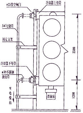 2.2.4 在“裝置”及冷卻器與管路的接口處采用波紋管,形成柔性連接,以避免由于“裝置”及冷卻器在運行中產(chǎn)生震動對油管路各焊口造成的損壞。管路與變壓器外引時可以固定。這樣,既克服了震動給管路帶來的影響,又為管路安裝提供了方便條件,同時,又消除了溫度變化給管路帶來的影響。 2.2.5 為了防止油外循環(huán)管路萬一發(fā)生跑油,對變壓器安全造成威脅,在外管路與變壓器接口處安裝可靠的真空閥門,確保萬無一失。