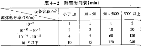 (3)為減少起電,烴類液體中應避免混入其他不相溶的第二相雜質,如水等。因此應盡可能減少和排除槽底和管道中的積水。若管道內明顯存在第二物相時,其流速應控制在lm/s以下。