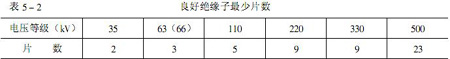 ?。?)帶電作業(yè)時,良好絕緣子數(shù)應(yīng)不少于規(guī)定數(shù)。帶電作業(yè)更換絕緣子或在絕緣子串上作業(yè)時,良好絕緣子片數(shù)不得少于表5-2的規(guī)定。