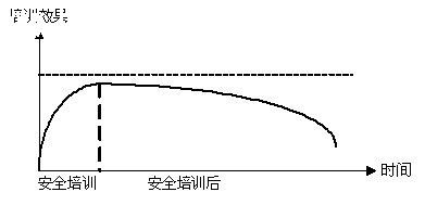 最后,安全素質(zhì)培訓(xùn)的效果不夠持久。研究表明,安全培訓(xùn)這種來自外部的強(qiáng)化訓(xùn)練能夠較快的促進(jìn)員工安全素質(zhì)的提高,但在培訓(xùn)后期效果將會(huì)隨著時(shí)間逐步減弱。如下圖所示: