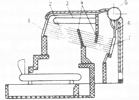 1―前分聯(lián)箱 2―爐管 3―過熱器 4―折煙墻 5―鍋筒 6―分聯(lián)管 7―后分聯(lián)箱