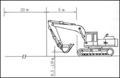 將挖掘機停放在長約25m且平整堅硬場地上的一端(見附圖),啟動發(fā)動機,將速度自動控制開關(guān)(AEC)斷開,并將發(fā)動機的油門放置在“10”的位置,同時推下左、右行走先導(dǎo)控制閥,使機器向前直線行走約25m,結(jié)果整機向左偏移了1.3m;然后,推下左、右行走先志控制閥,使機器向后直線行走約25m,發(fā)現(xiàn)整機也向左偏移1.3m。