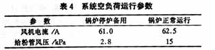 ??? 石灰石系統(tǒng)安裝和單體試運(yùn)完畢后,進(jìn)行分系統(tǒng)調(diào)試。在此期間,最好先進(jìn)行空負(fù)荷試運(yùn),以考查系統(tǒng)性能,掌握系統(tǒng)空載時(shí)的運(yùn)行參數(shù),如風(fēng)機(jī)的空載電流、給粉管空載時(shí)的風(fēng)壓,這些參數(shù)對(duì)系統(tǒng)今后帶負(fù)荷運(yùn)行具有相當(dāng)大的參考價(jià)值。石灰石系統(tǒng)在鍋爐備用和鍋爐帶負(fù)荷時(shí)空負(fù)荷運(yùn)行的主要參數(shù)見(jiàn)表4。