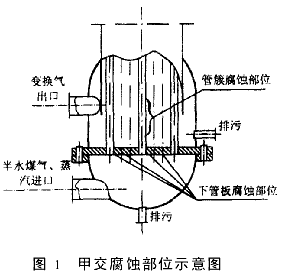 ??? 甲交腐蝕部位見圖1。運行環(huán)境見圖2。