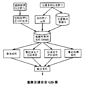 國內(nèi)外很多交通安全管理機(jī)構(gòu)都建立了信息決策系統(tǒng),用于滿足各自特定的需求。但這些交通安全信息系統(tǒng)大多數(shù)都不具有地圖顯示及空間建模分析功能,從而還不能進(jìn)行大面積范圍的交通安全分析。地理信息系統(tǒng)(GIS)是一組具有圖形圖像數(shù)字化、空間數(shù)據(jù)管理、查詢檢索、模型運(yùn)算和多種輸出功能的軟件,它可以結(jié)合具體地點的事故數(shù)據(jù),進(jìn)行直觀的空間分析,因此,適用于與地理位置密切相關(guān)的交通安全問題的研究。