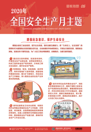 本套掛圖將 2020 年安全月主題凝結(jié)成精煉的語(yǔ)言、溫馨的畫(huà)面,主題突出、層層遞進(jìn),從而加深對(duì)安全發(fā)展的體會(huì)和理解。具有營(yíng)造安全生產(chǎn)月氣氛、增強(qiáng)員工應(yīng)急意識(shí)、促進(jìn)安全生產(chǎn)的作用,是安全月活動(dòng)的宣傳佳品。