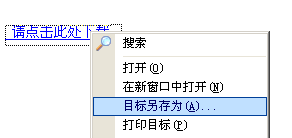 ”的提示,點(diǎn)擊鼠標(biāo)右鍵,出現(xiàn)如圖 ,選擇目標(biāo)另存為,就可將文件進(jìn)行保存到本地。