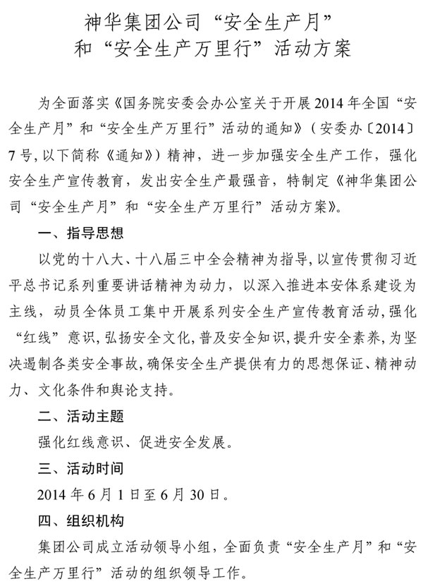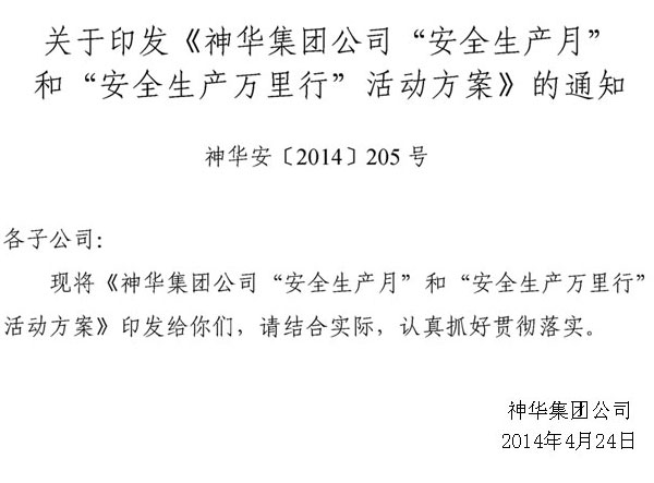 2014年神華集團(tuán)公司安全生產(chǎn)月方案